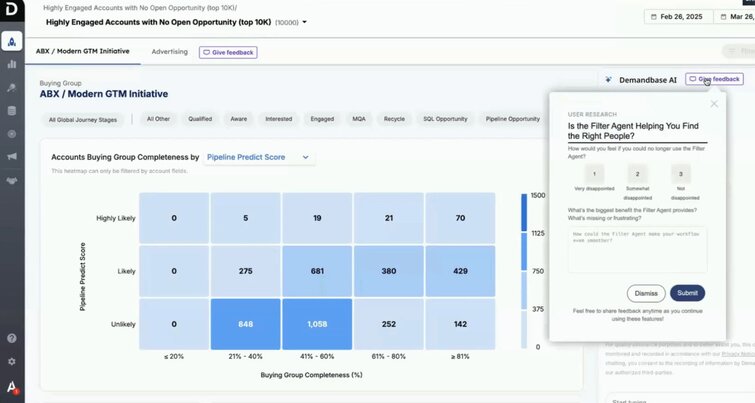 Now that the agents are live, Demandbase is collecting feedback through in-app polls using Pendo. “We’re getting input directly inside the product, right as users interact with the agents,” said Holdorf. “We’re learning whether it’s helping them do their job, whether it’s actually moving pipeline. That kind of feedback is critical to building the right agents—and improving them fast.”