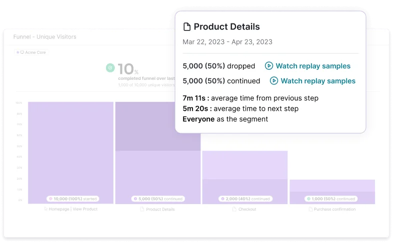 Feedback items are also contextualized with product analytics, so McCann’s PMs can review the steps and challenges encountered before our user submitted their feedback.