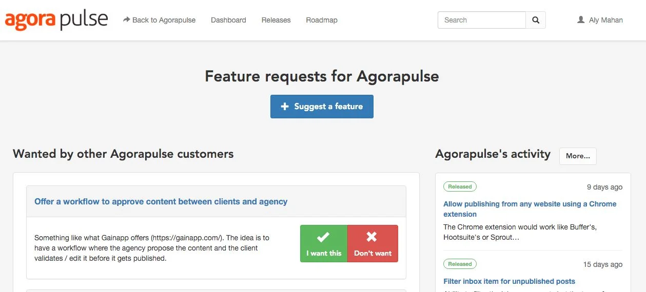 Customers are also happier now that communication is automated. They now know that AgoraPulse are listening to what they have to say, and that their opinion is valued, regardless of the outcome. Customers understand that not every request gets built and more importantly, they understand why.