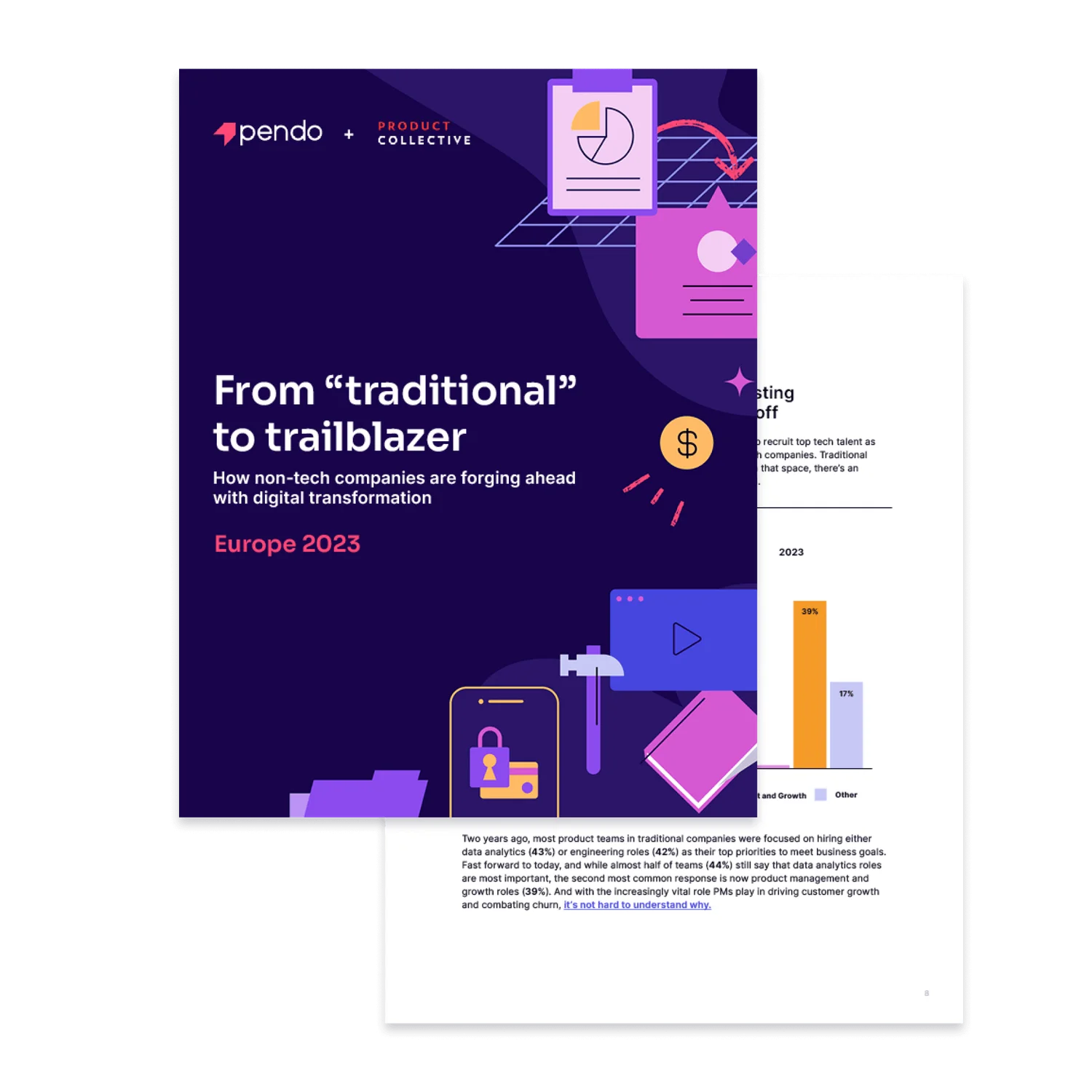 Pendo and Product Collective partnered with a third-party agency in April and May 2023 to conduct a global survey of more than 1,200 non-tech companies with 500 or more employees across the U.S. and Europe. The goal was to gauge the extent to which traditional businesses are acquiring the talent, tools, and strategies typically used by technology companies as they undergo digital transformation.