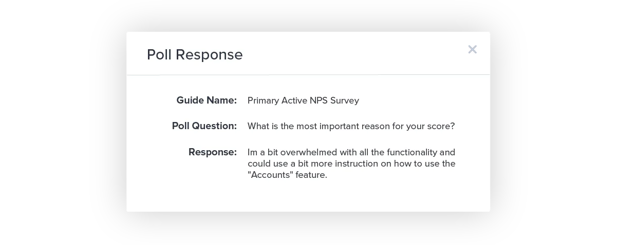 Finally, NPS can not only be an indicator of whether your onboarding experience leads to happier customers, but it can also be a great way to inform improvements to your onboarding. Pendo allows you to analyze your NPS score over time. You can filter NPS based on whether a user completed an onboarding flow or not, and you can also monitor NPS over time to see general trends in NPS after implementing a new onboarding walkthrough.