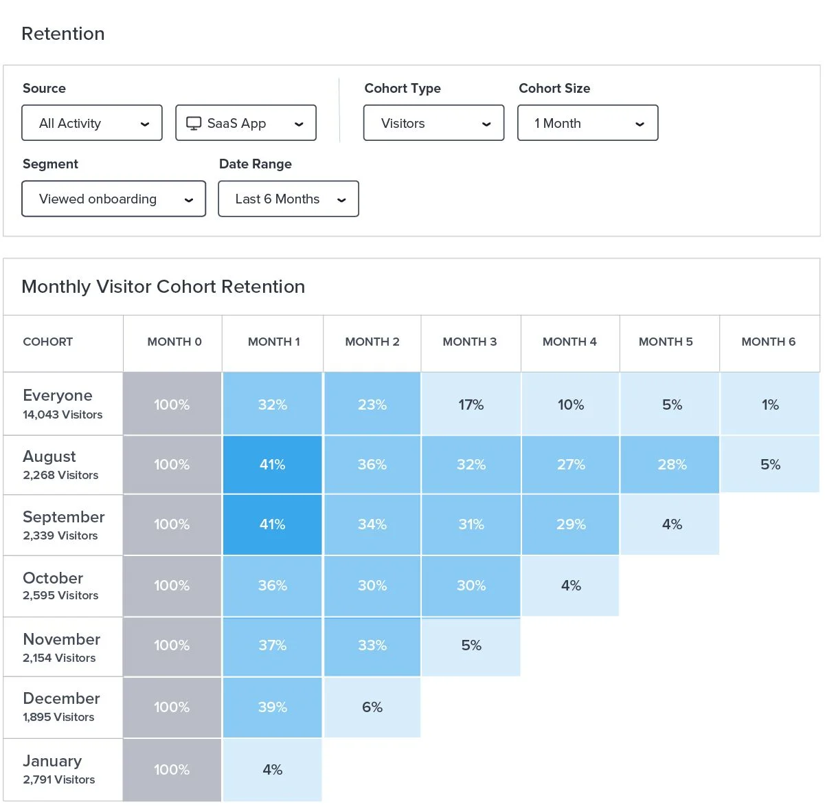 You can look at retention by visitor or by account depending on what will be most impactful for your business.