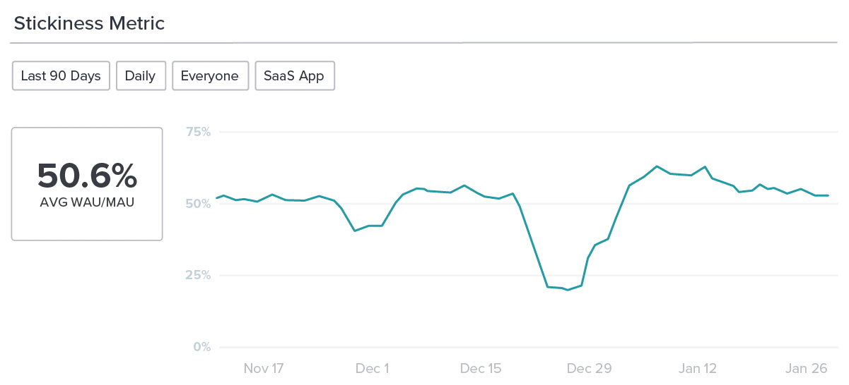 Apply a segment to see the stickiness for users who viewed your onboarding walkthrough versus users who didn’t.