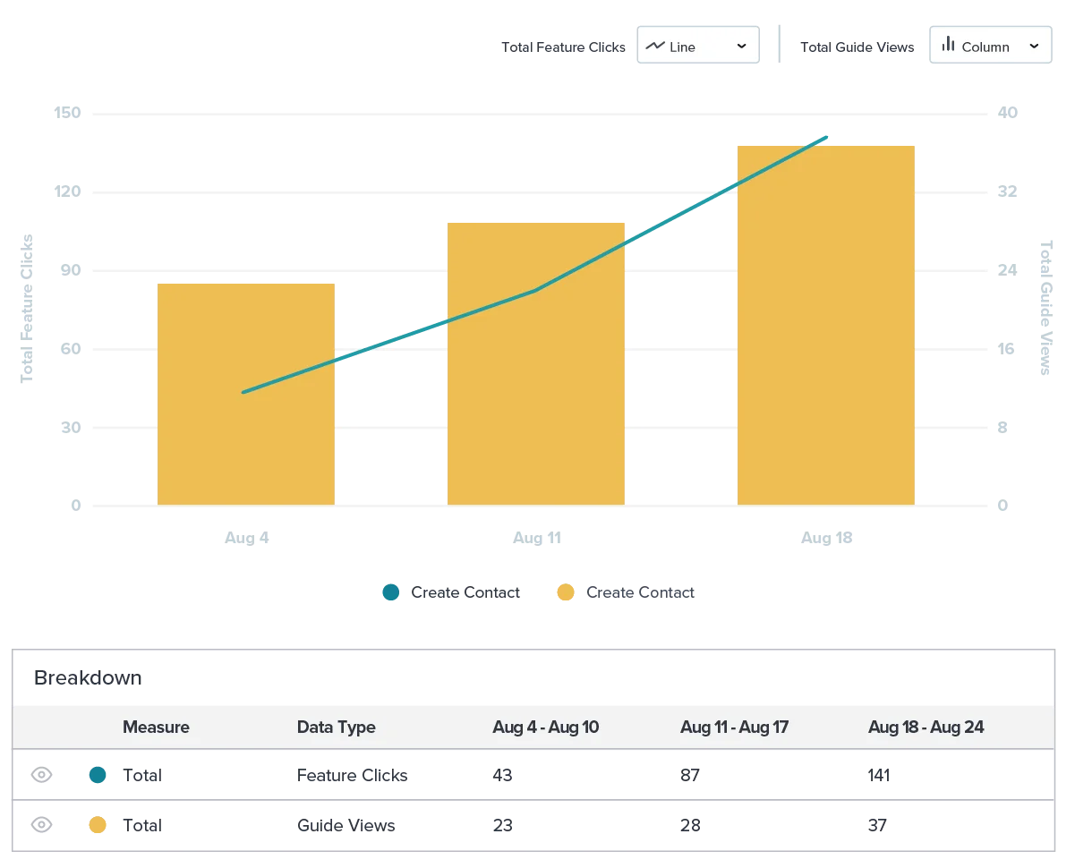 While understanding onboarding guide engagement is important, it’s perhaps even more essential to know whether a guide influenced the desired product behavior.