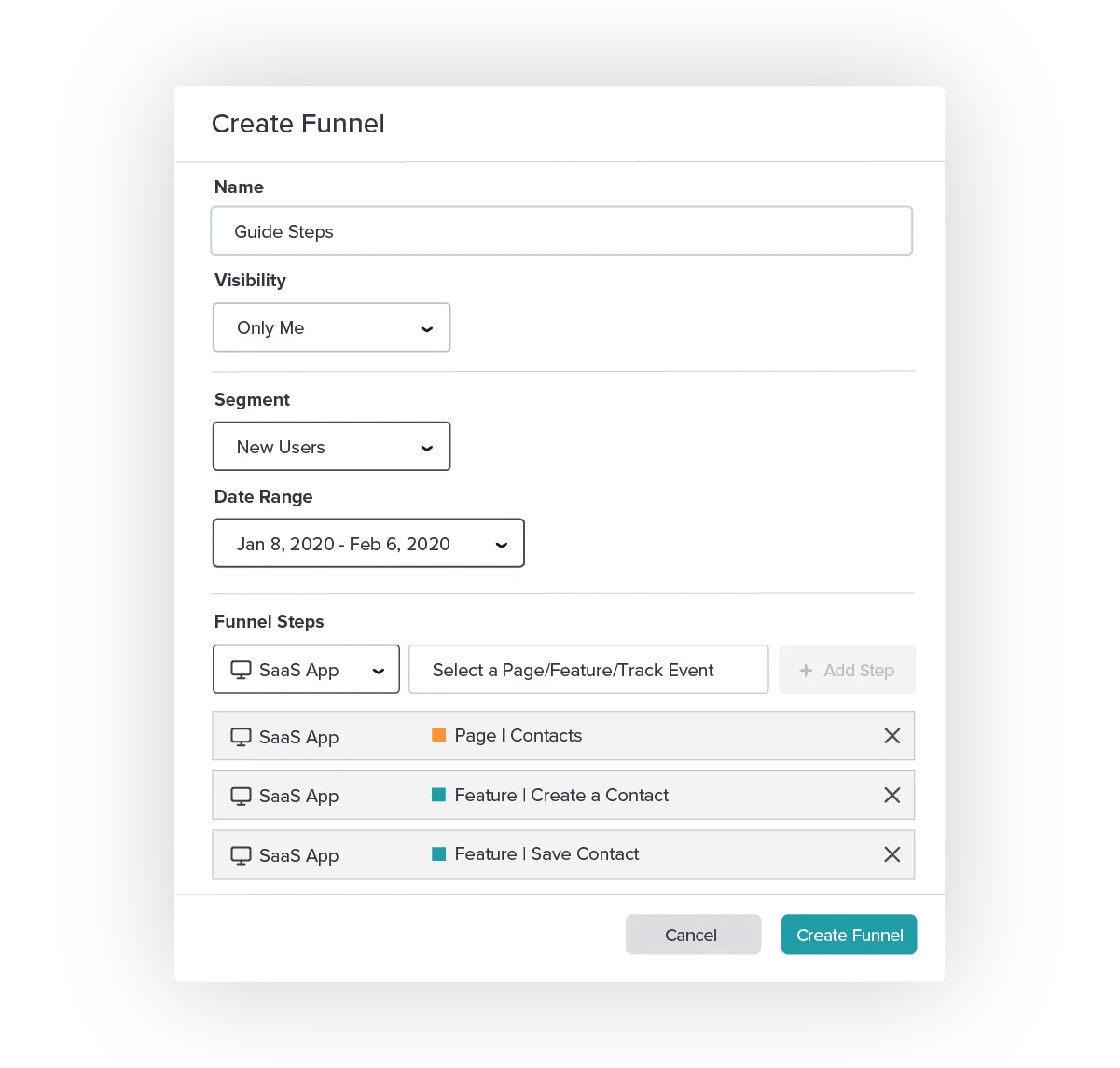If you have a three-step guide, for example, you can build a funnel mirroring the navigation steps you’re asking users to take within the guide. To have a more precise lens into onboarding effectiveness, you should apply a segment that filters for users who have engaged with the guide you’re trying to measure.
