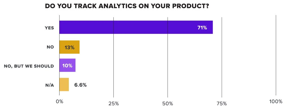 As expected, most respondents recognized the importance of tracking product analytics. Eighty-one percent of respondents reported that they currently track analytics, or have a desire to do so. However, out of those who do currently track analytics, the number of respondents who do so at a high level was quite a bit lower.