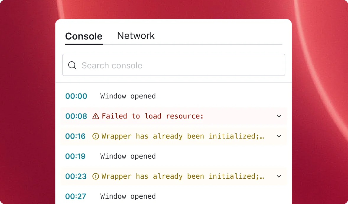 Surface crash-and error-triggered experiences with console and network logs right in Pendo.