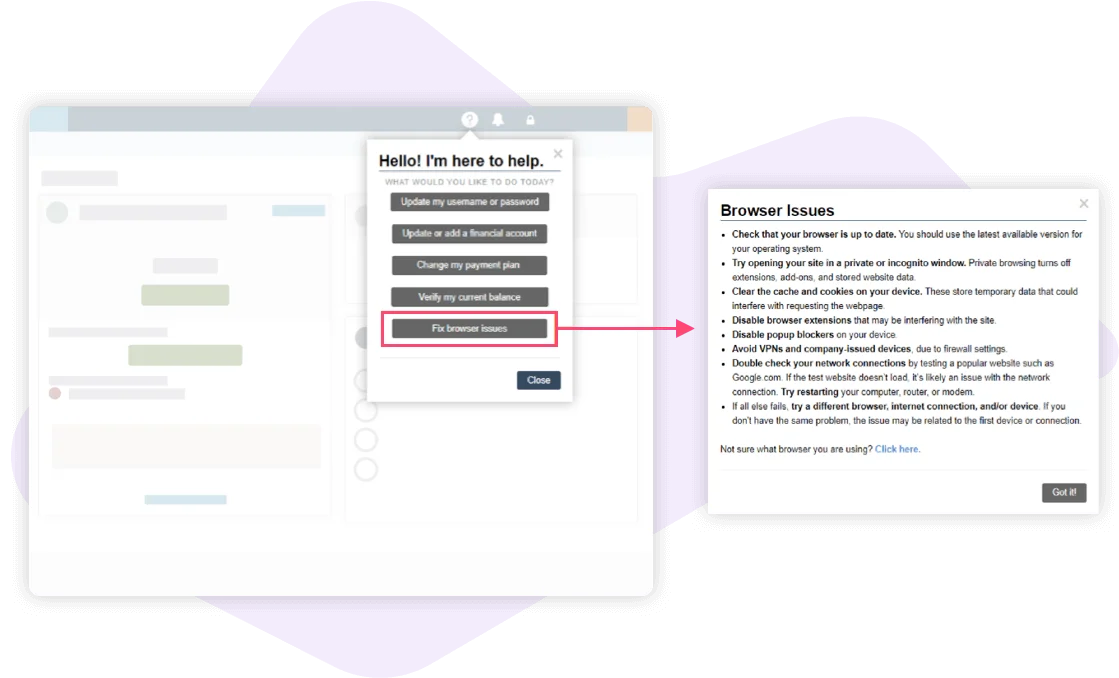 The largest segment in one of Nelnet’s products didn’t have access to their knowledge base, and users from this segment made up the majority of the organization’s support call volume. So, the team got creative and used an in-app guide to stand in as a resource center for these users and proactively answer their most common support call topics.