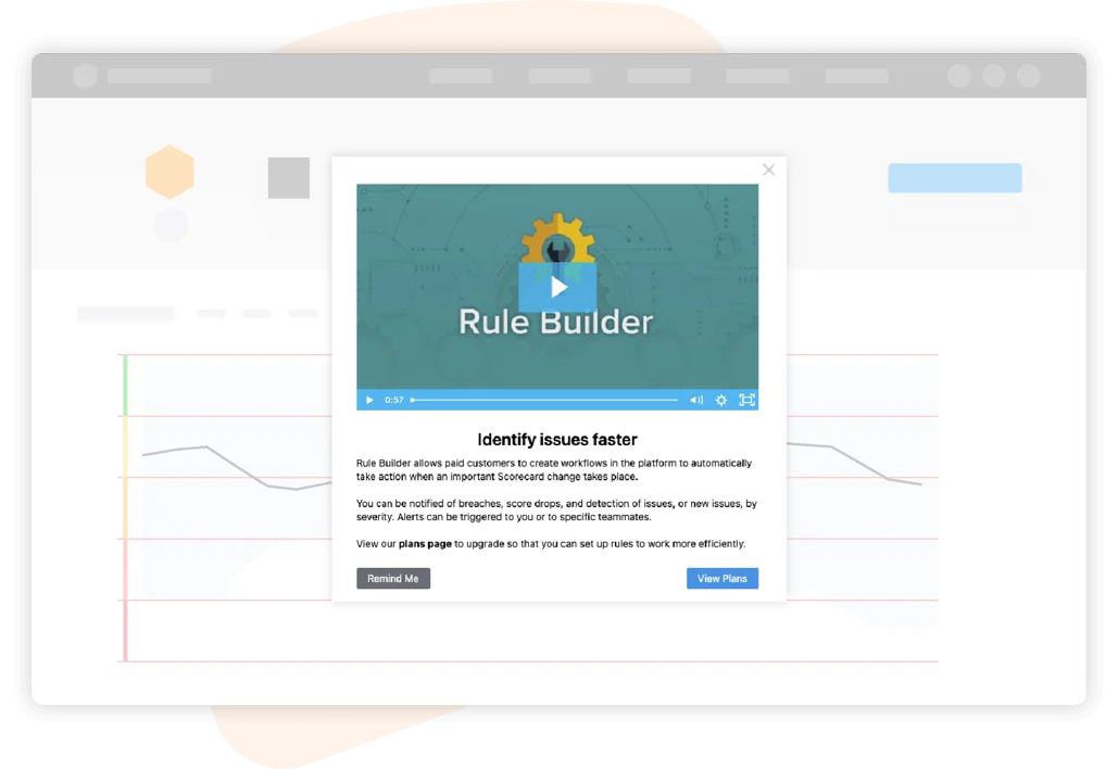 You can never go wrong with some old fashioned FOMO. The product team at SecurityScorecard set out to promote curiosity and discoverability around paid features that free users may not have known were available. They created an in-app guide to act as an advertisement for a feature available to paid users, and served the guide only to their free users.